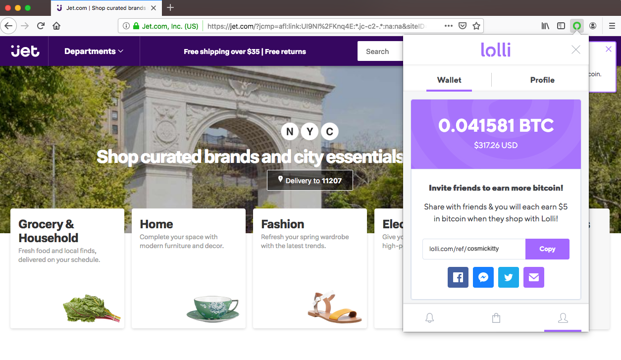 Lolli For Firefox Earn Free Bitcoin When You Shop Online Product